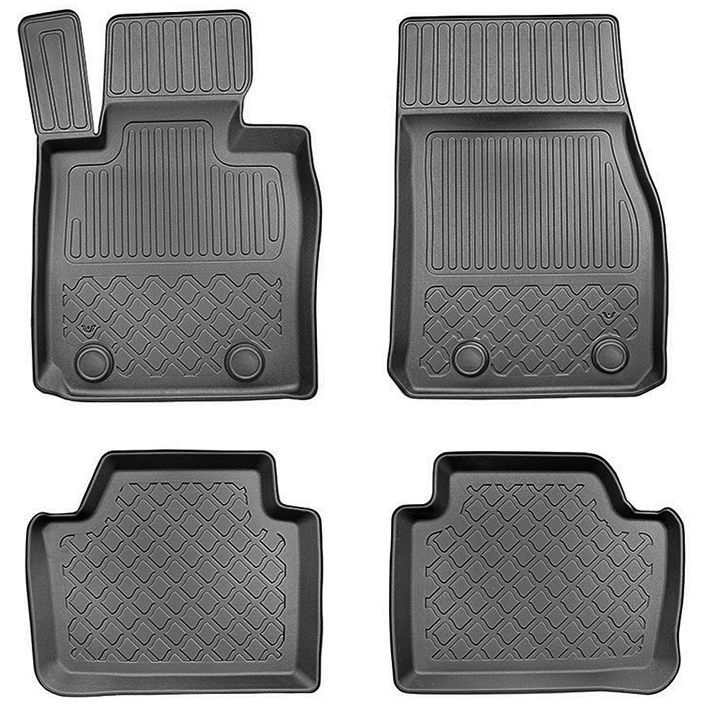 Unsere passgenauen Allwetter Fussmatten haben einen hohen, umlaufenden Rand und sind aus hochwertigem, flexiblem TPE Material (Gummi beschichtet) hergestellt. Auch bei besonders schlechtem Wetter gelangen weder Nässe noch Schneematsch in den Teppichboden des Fahrzeugs. Das attraktive Design sorgt für ein perfektes Aussehen im Fahrzeuginneren.