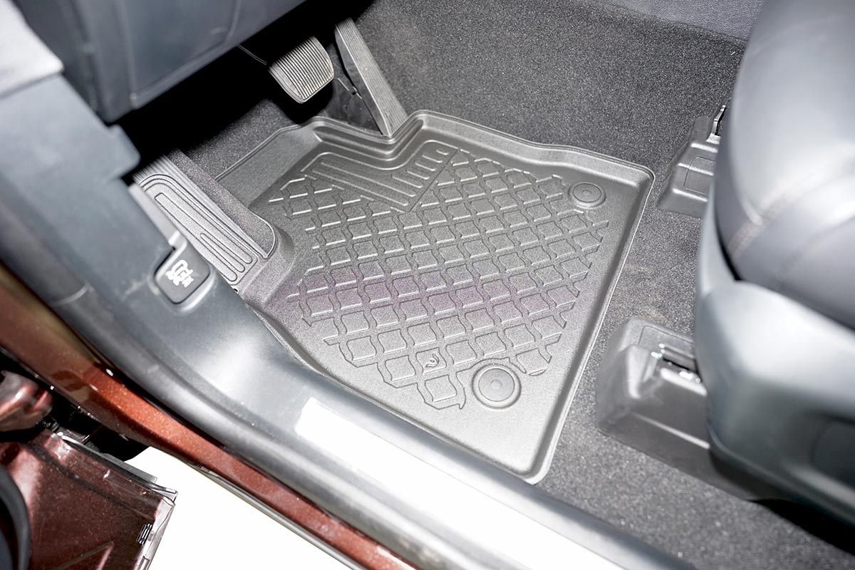 Unsere passgenauen Allwetter Fussmatten haben einen hohen, umlaufenden Rand und sind aus hochwertigem, flexiblem TPE Material (Gummi beschichtet) hergestellt. Auch bei besonders schlechtem Wetter gelangen weder Nässe noch Schneematsch in den Teppichboden des Fahrzeugs. Das attraktive Design sorgt für ein perfektes Aussehen im Fahrzeuginneren.
