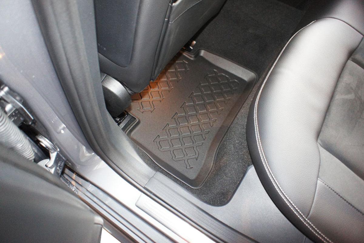 Unsere passgenauen Allwetter Fussmatten haben einen hohen, umlaufenden Rand und sind aus hochwertigem, flexiblem TPE Material (Gummi beschichtet) hergestellt. Auch bei besonders schlechtem Wetter gelangen weder Nässe noch Schneematsch in den Teppichboden des Fahrzeugs. Das attraktive Design sorgt für ein perfektes Aussehen im Fahrzeuginneren.