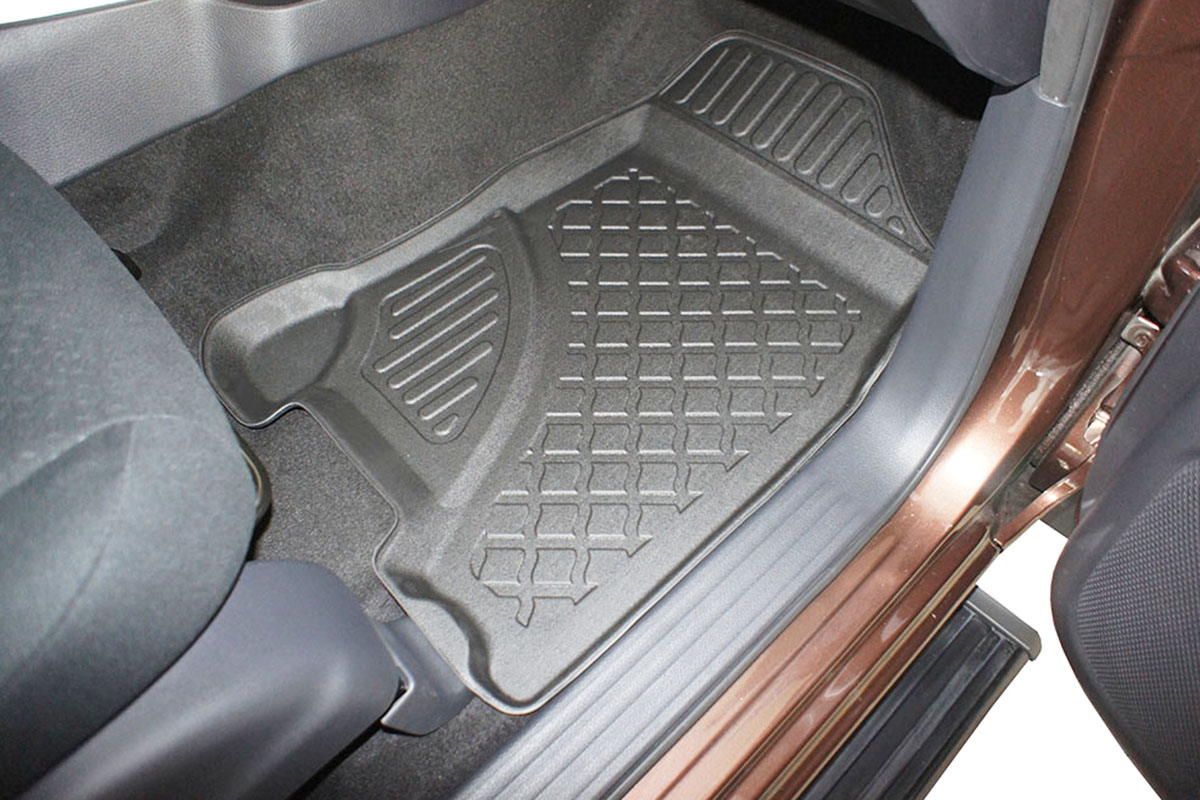 Unsere passgenauen Allwetter Fussmatten haben einen hohen, umlaufenden Rand und sind aus hochwertigem, flexiblem TPE Material (Gummi beschichtet) hergestellt. Auch bei besonders schlechtem Wetter gelangen weder Nässe noch Schneematsch in den Teppichboden des Fahrzeugs. Das attraktive Design sorgt für ein perfektes Aussehen im Fahrzeuginneren.