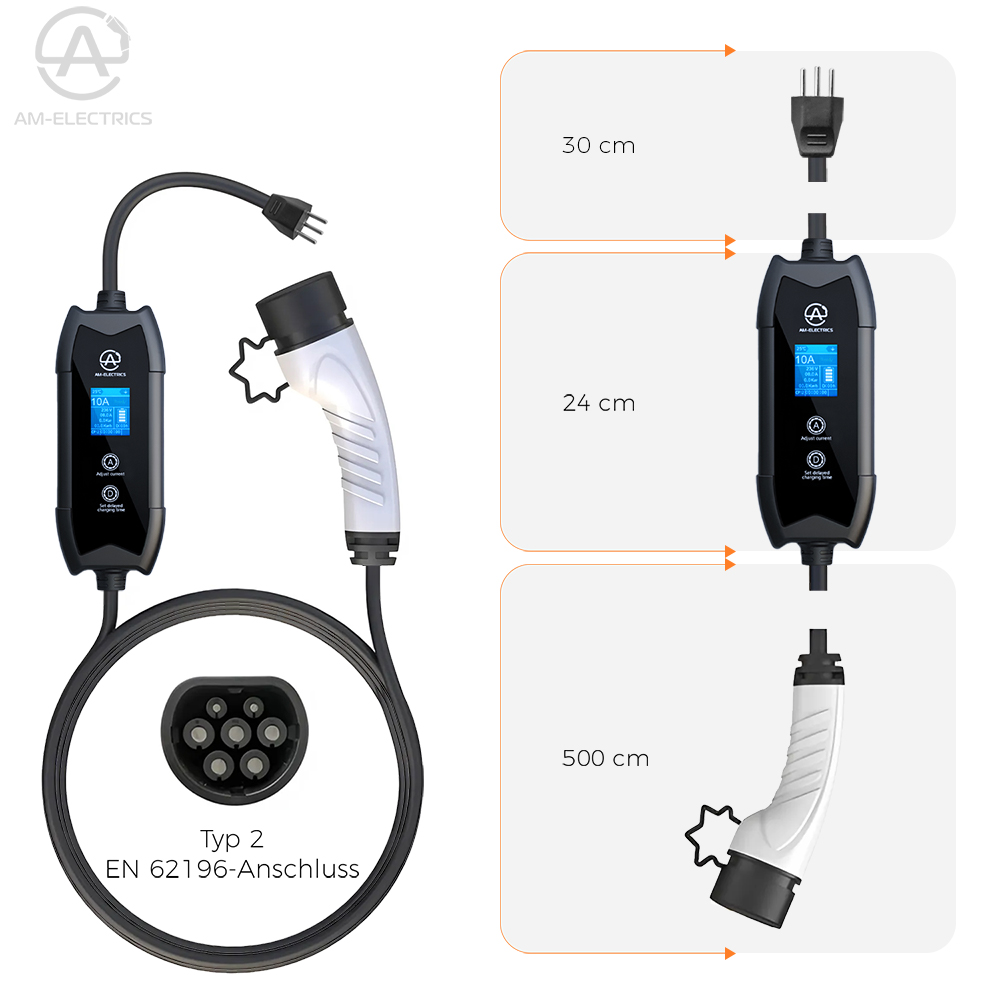 Tragbares EV Ladegerät Ladestation LCD Typ2 (230V) - AM-Electrics / Elektroauto